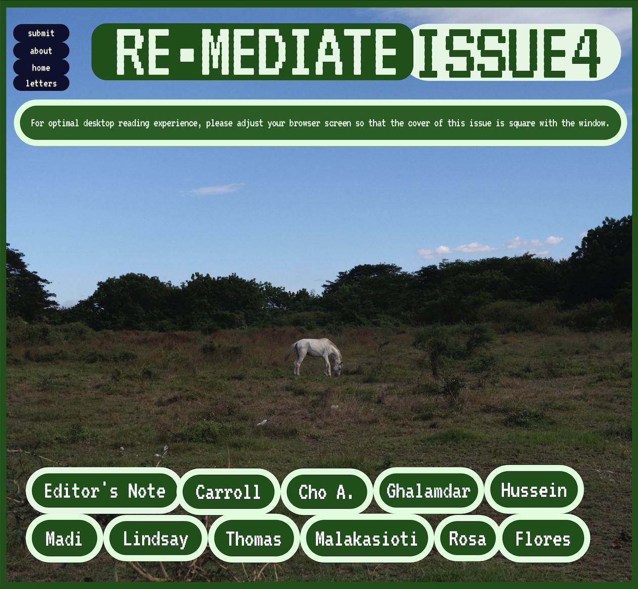 Re•mediate is open to submissions through our form and to pitches through our email address. Submissions will close March 1.